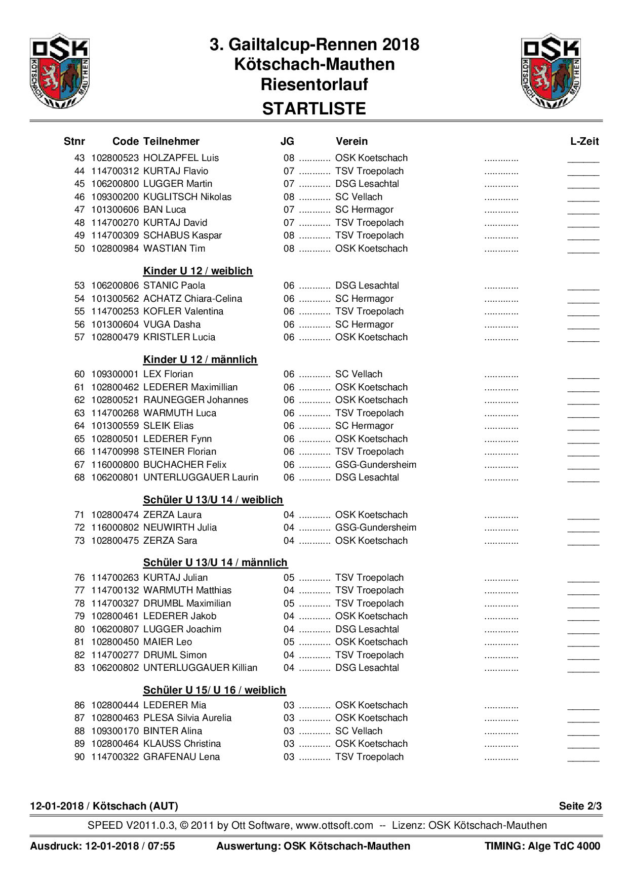 Startliste 3. Gailtalcuprennen 2018