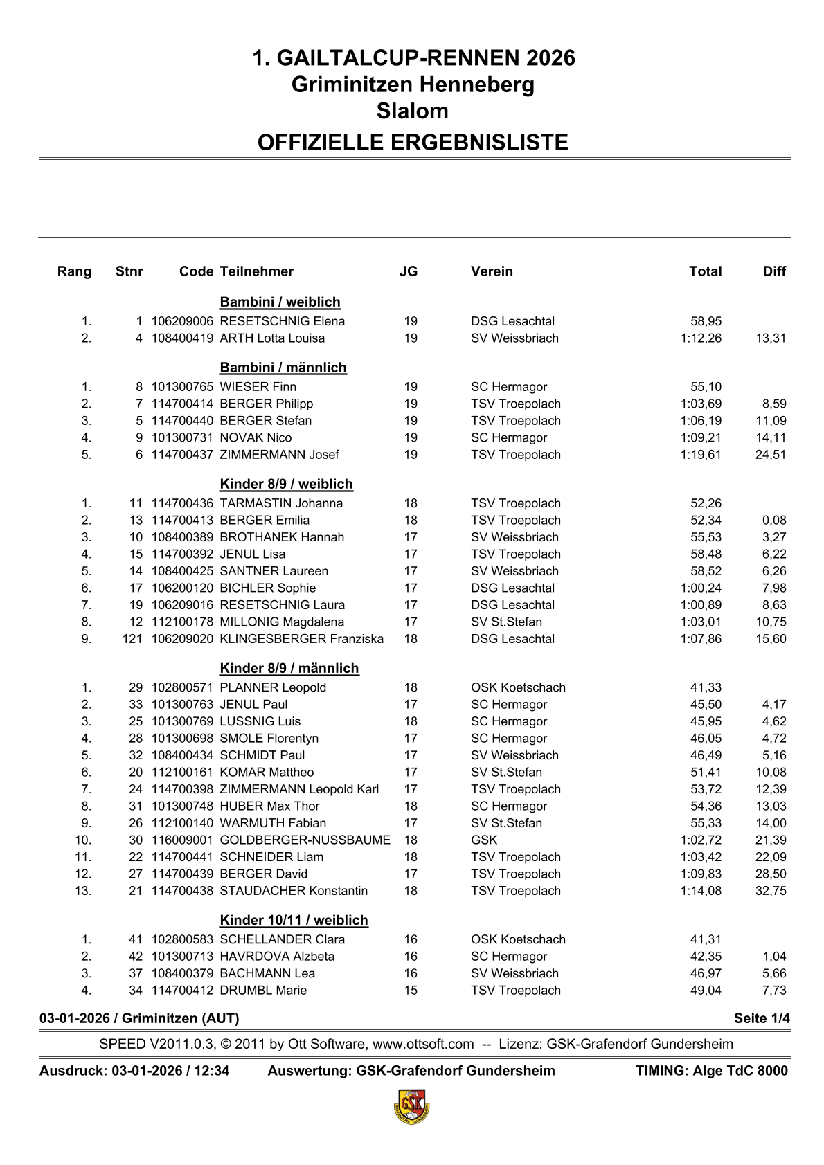 | 08.02.2026, 10.00 Uhr 4. Gailtalcuprennen 2026, SV Tröpolach |