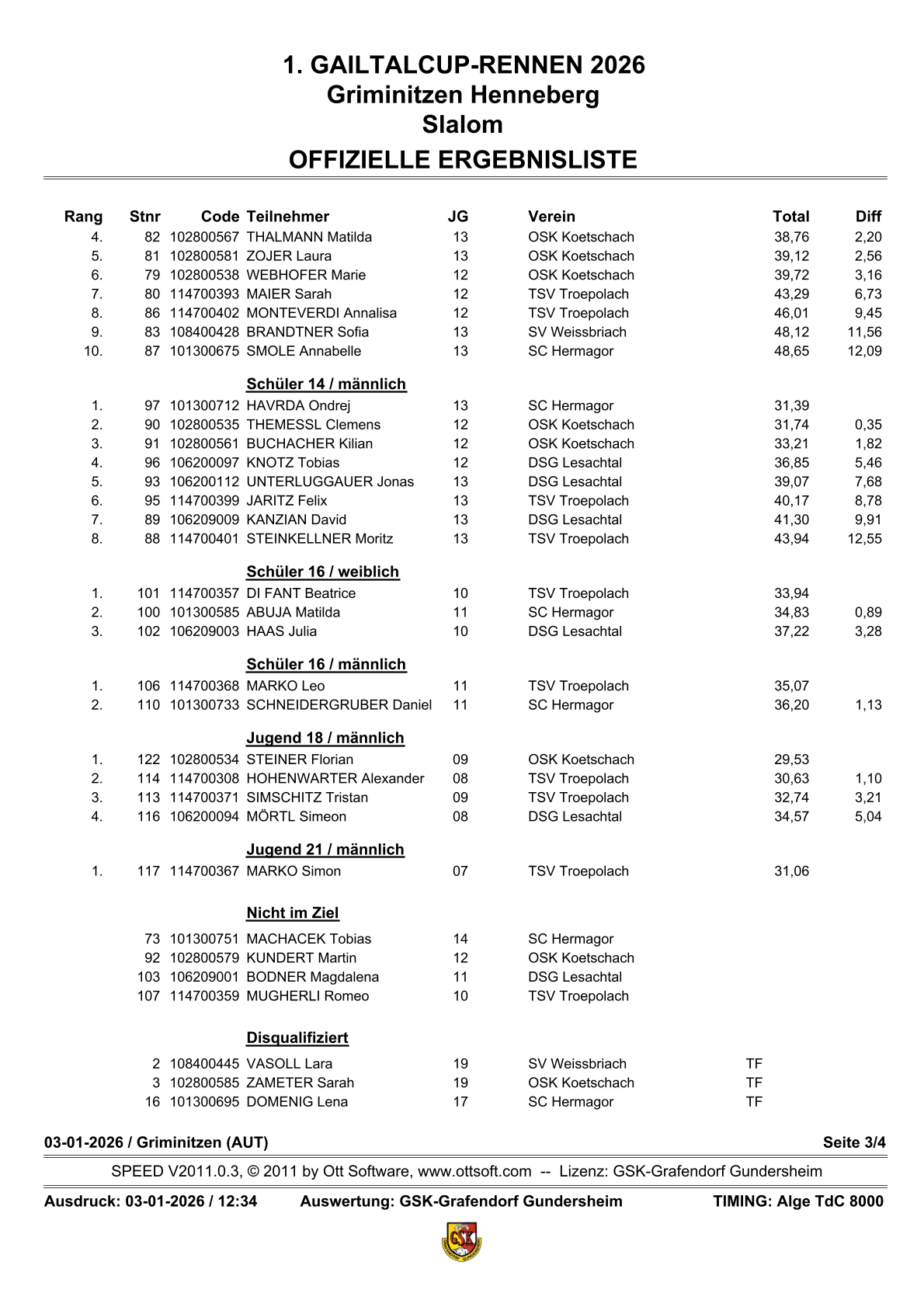 | 01.02.2026, 10.00 Uhr 3. Gailtalcuprennen 2026, OSK Kötschach/Mauthen |