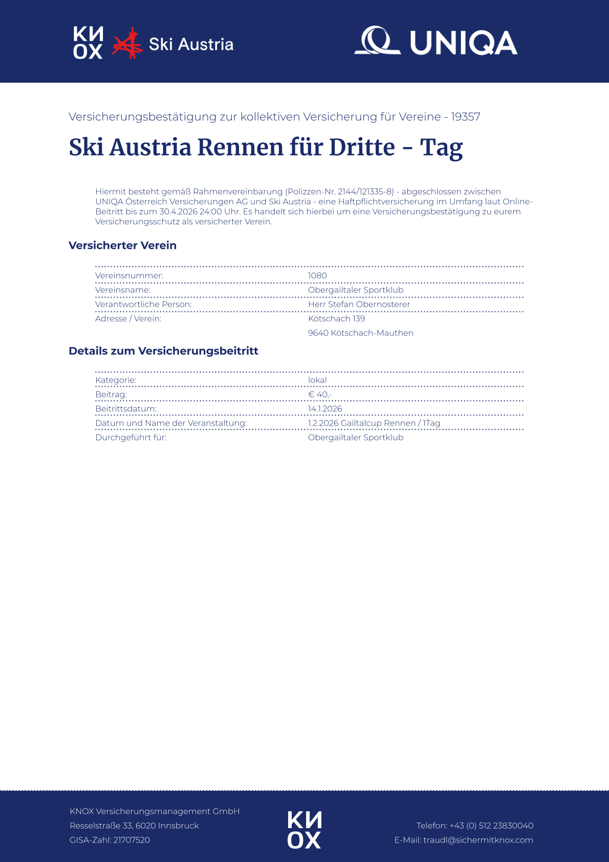 Versicherungsbestätigung als PDF-Download