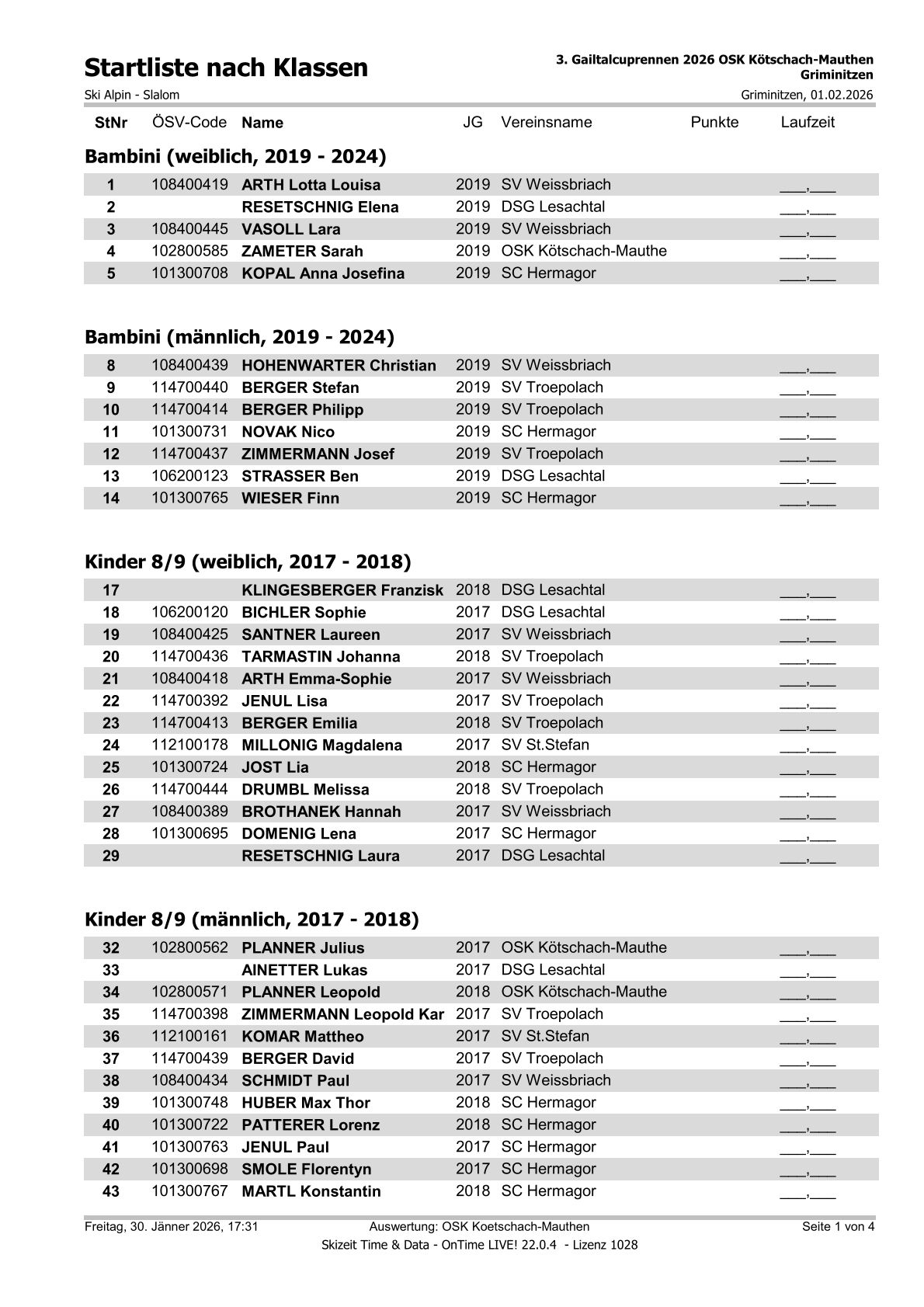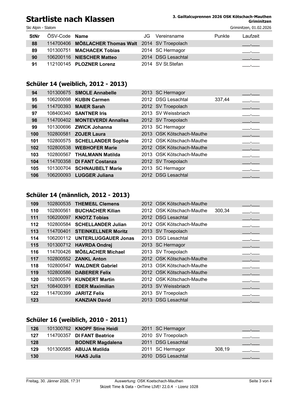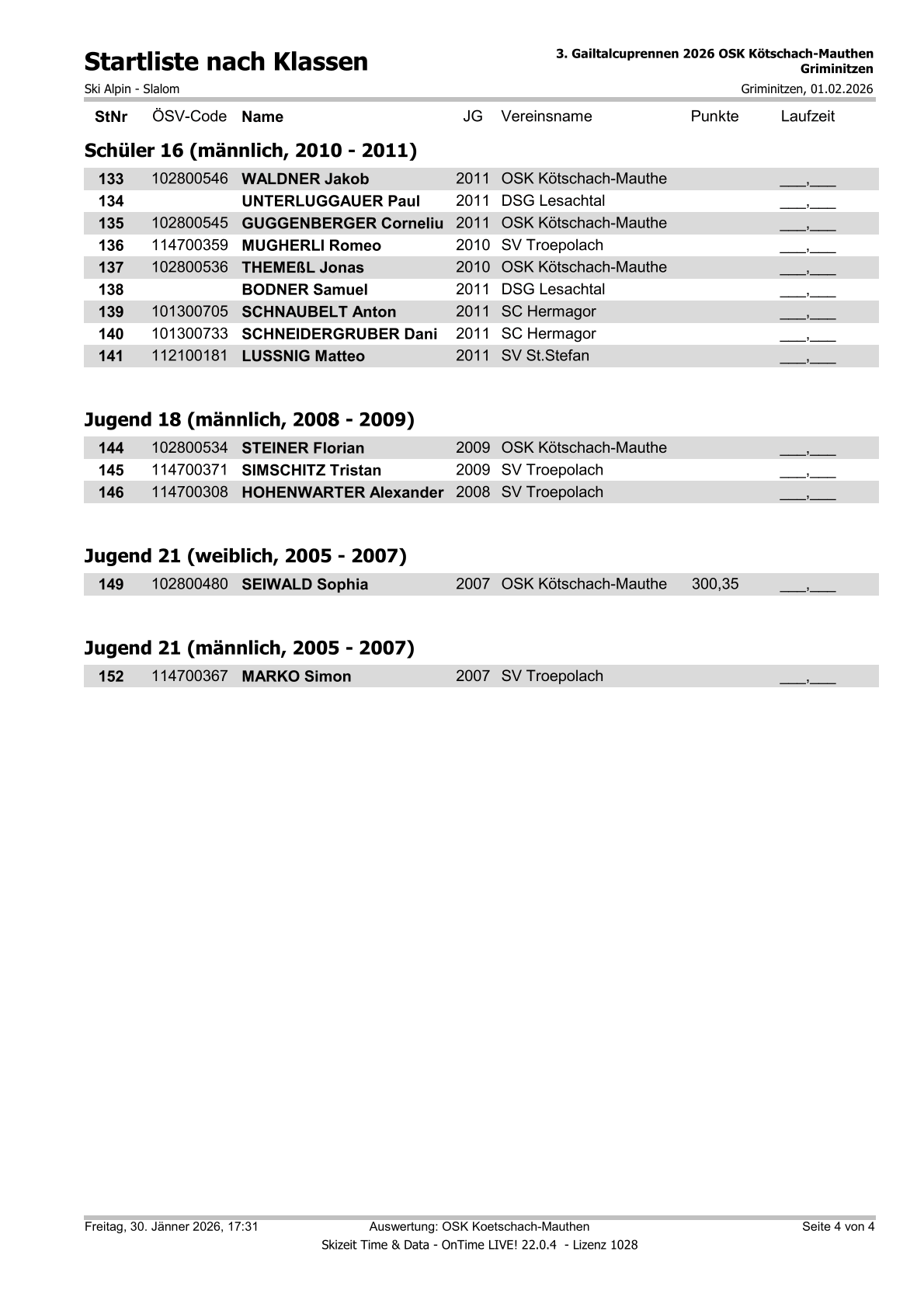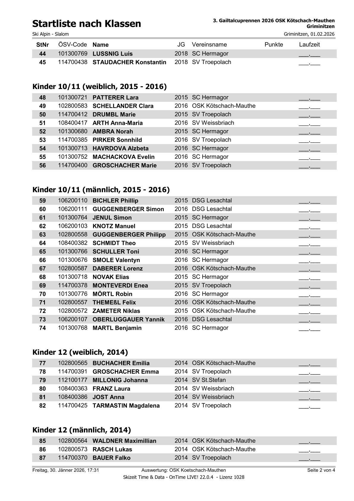 Startliste 3. Gailtalcuprennen 2026