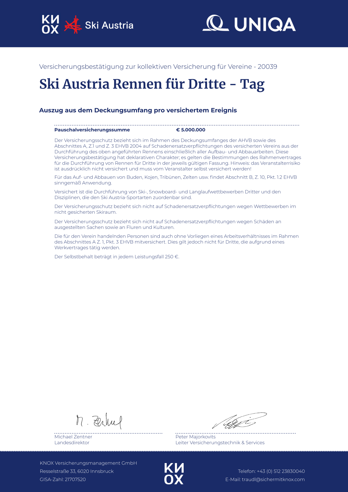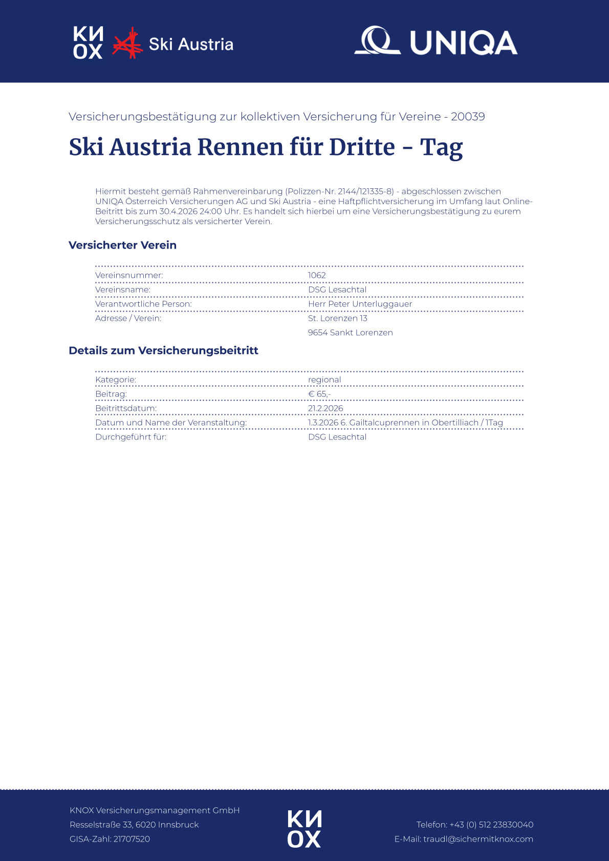 Versicherungsbestätigung als PDF-Download
