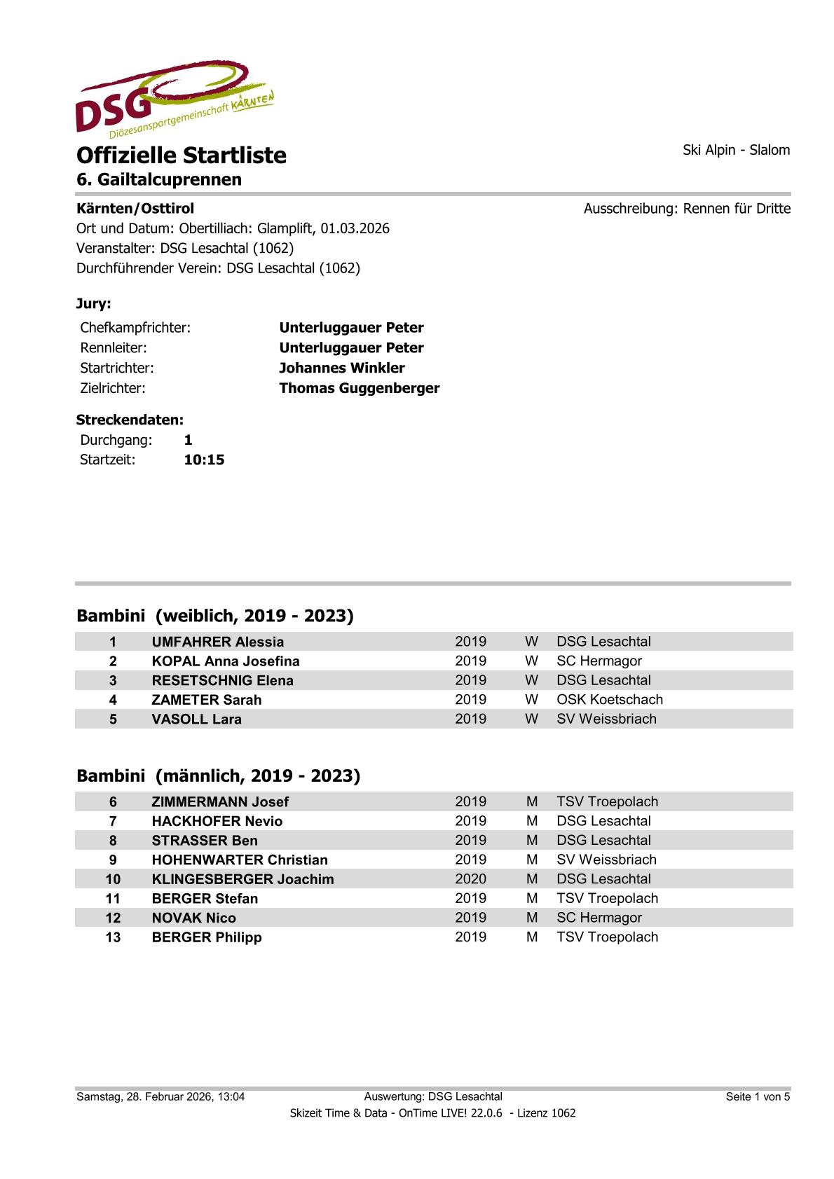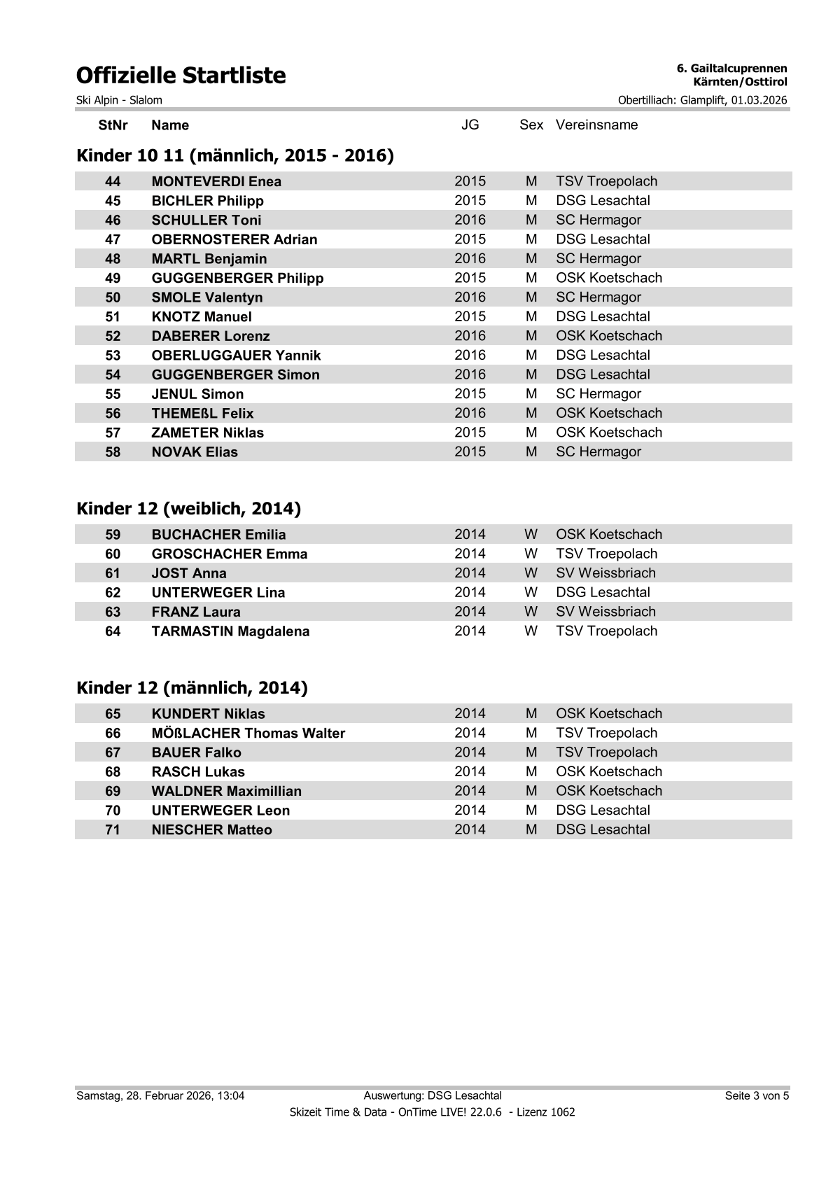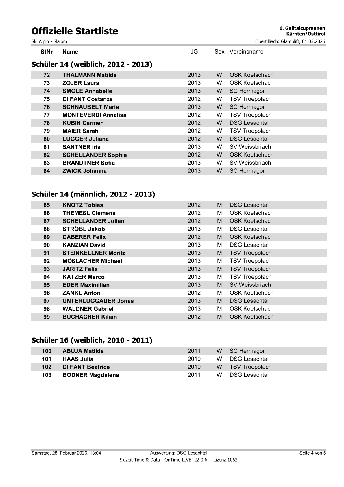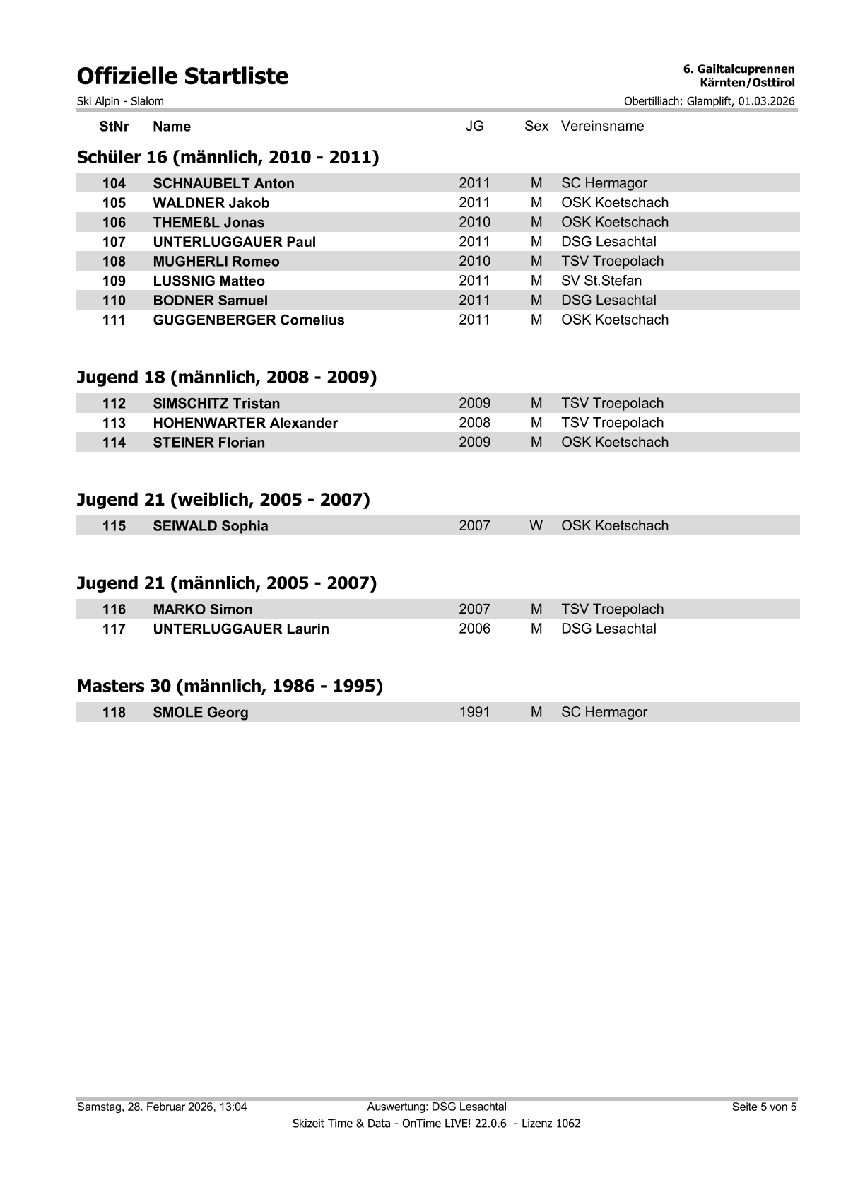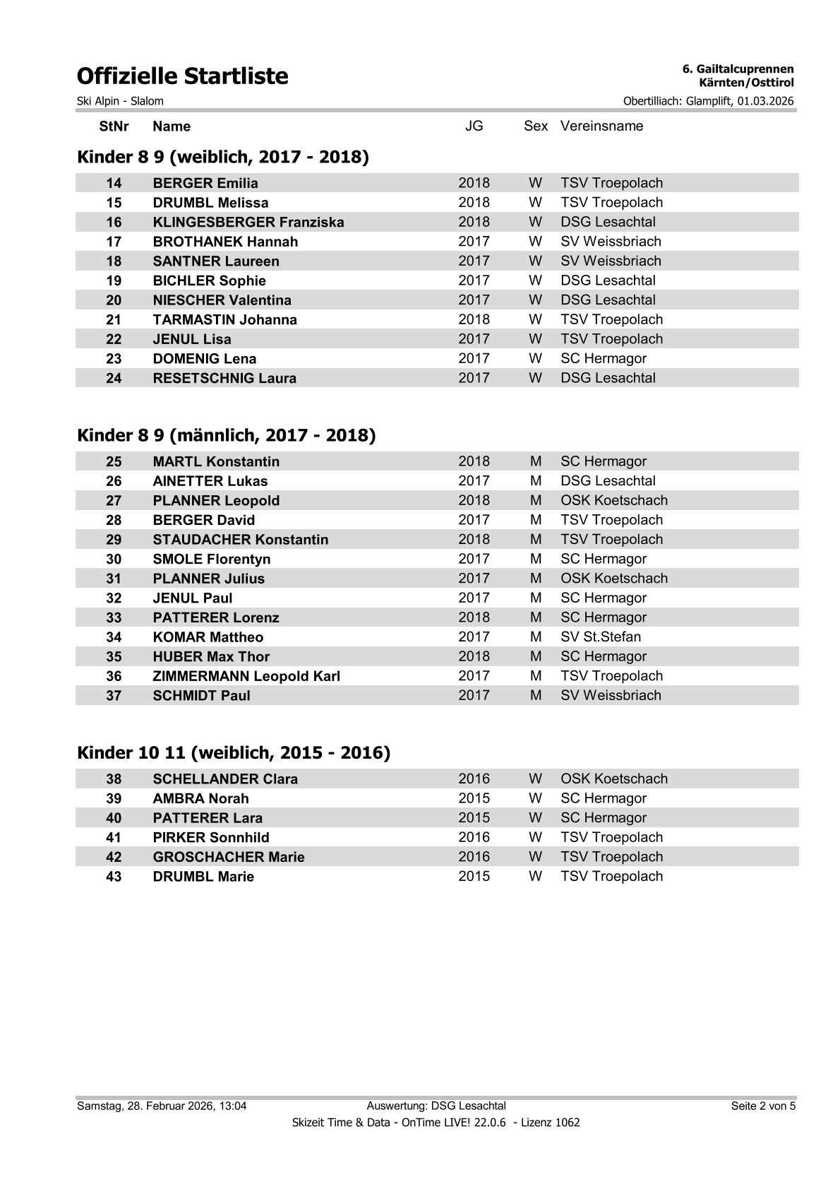 Startliste 6. Gailtalcuprennen 2026