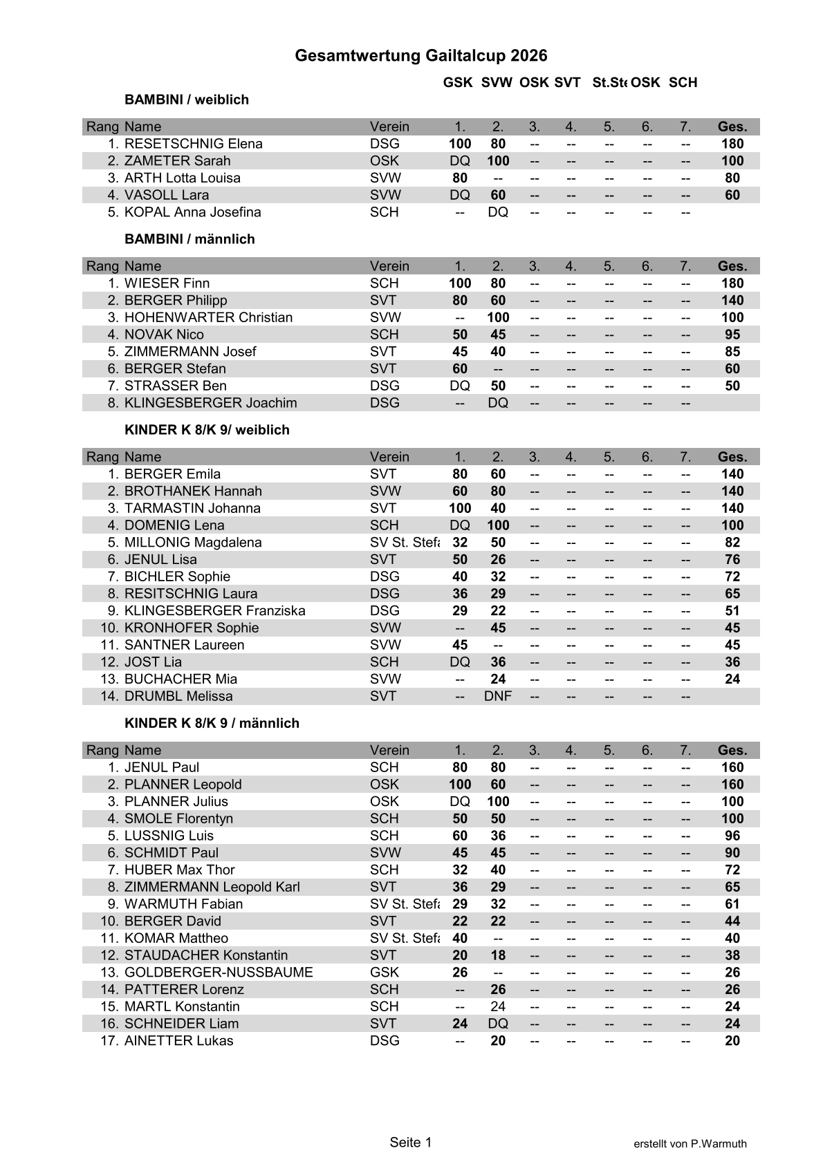 | 01.02.2026, 10.00 Uhr 3. Gailtalcuprennen 2026, OSK Kötschach/Mauthen |