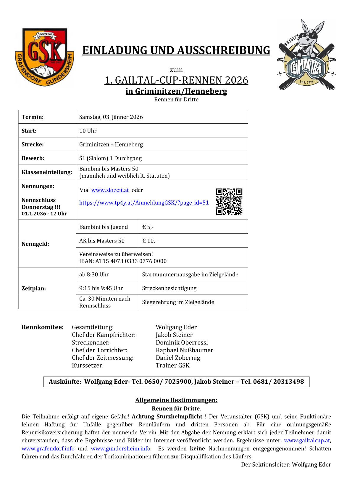 | 08.03.2026, 10.00 Uhr 7. Gailtalcuprennen 2026, SC Hermagor |