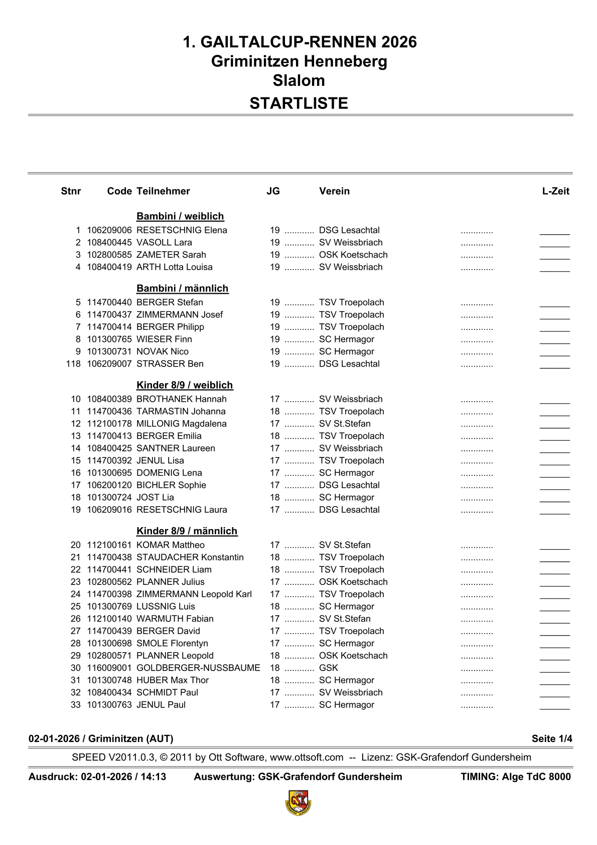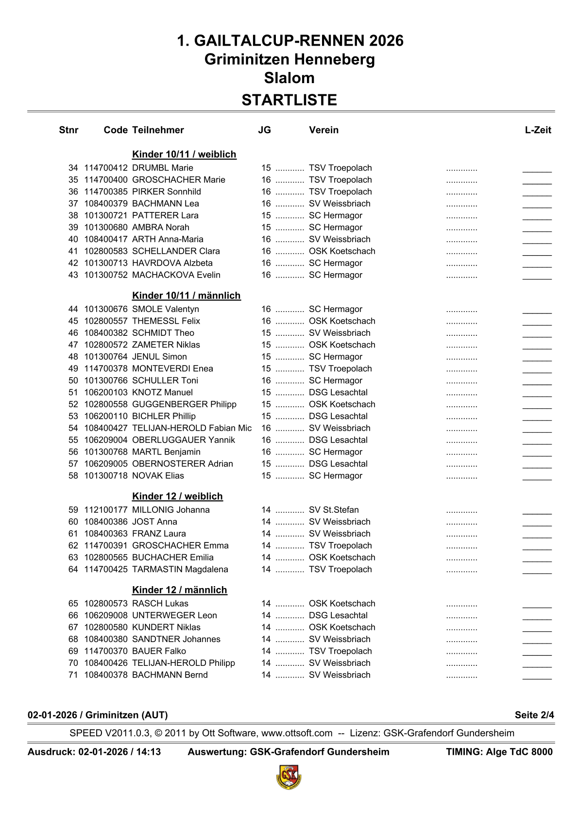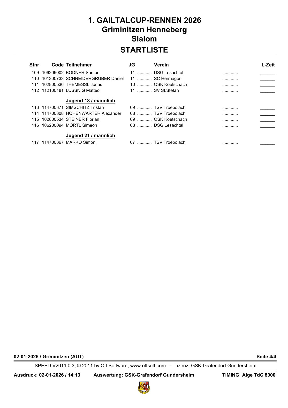 | 08.03.2026, 10.00 Uhr 7. Gailtalcuprennen 2026, SC Hermagor |