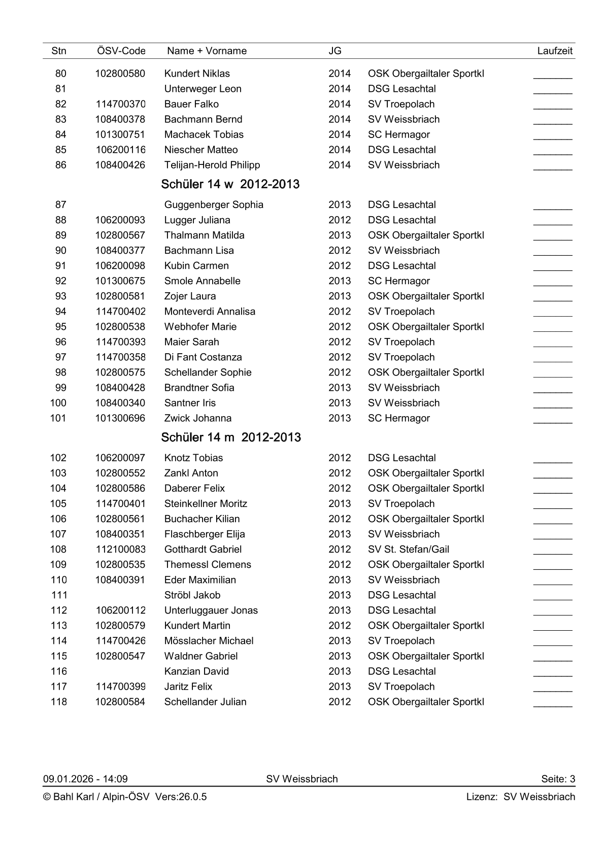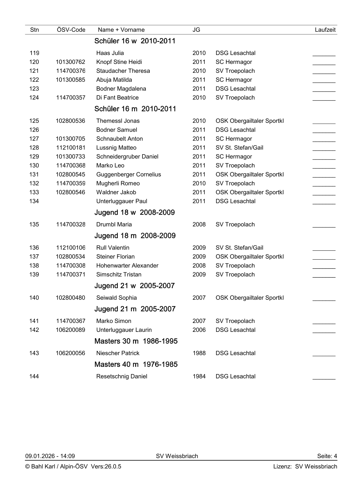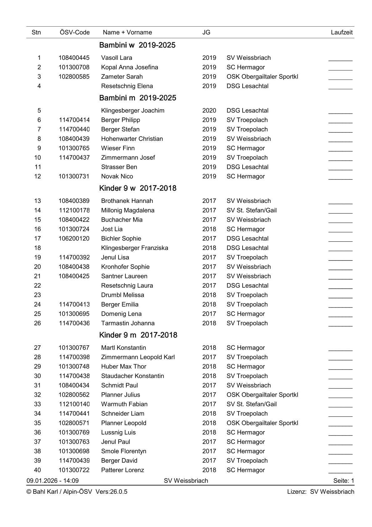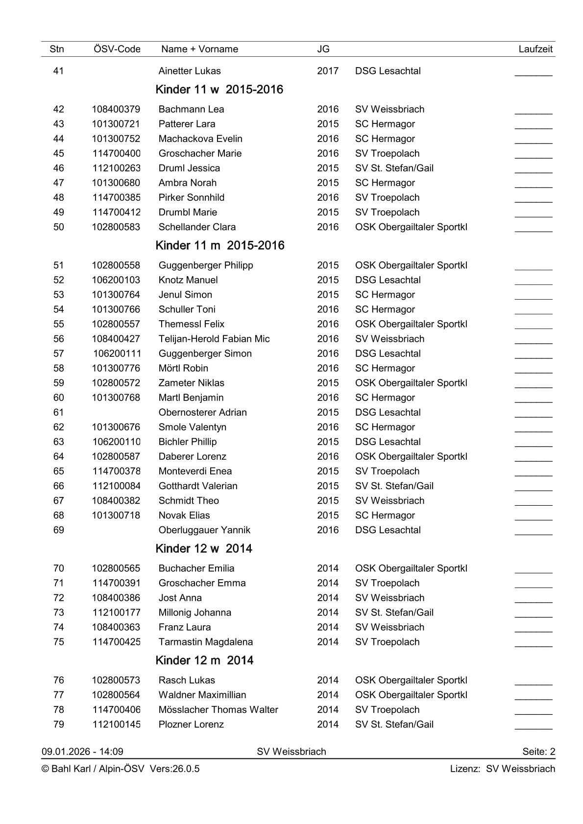 Startliste 2. Gailtalcuprennen 2026